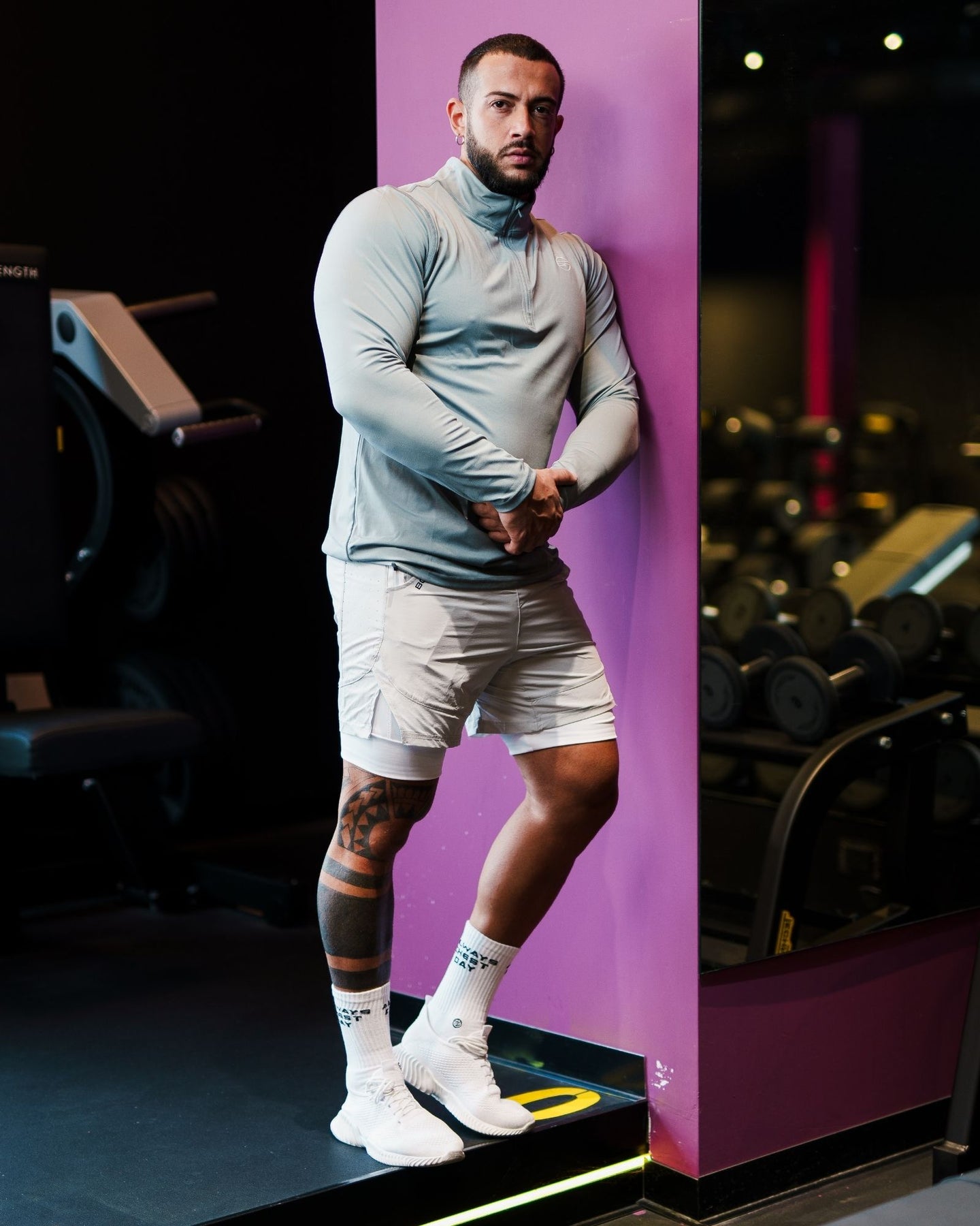 Il design con mezza zip frontale e colletto rialzato aggiunge un tocco di funzionalità e praticità, consentendo di regolare la ventilazione in base all’intensità dell’allenamento. La vestibilità aderente si adatta perfettamente al corpo, valorizzando la muscolatura senza compromettere la libertà di movimento. Il logo Bombafit sul petto aggiunge un dettaglio distintivo e moderno.